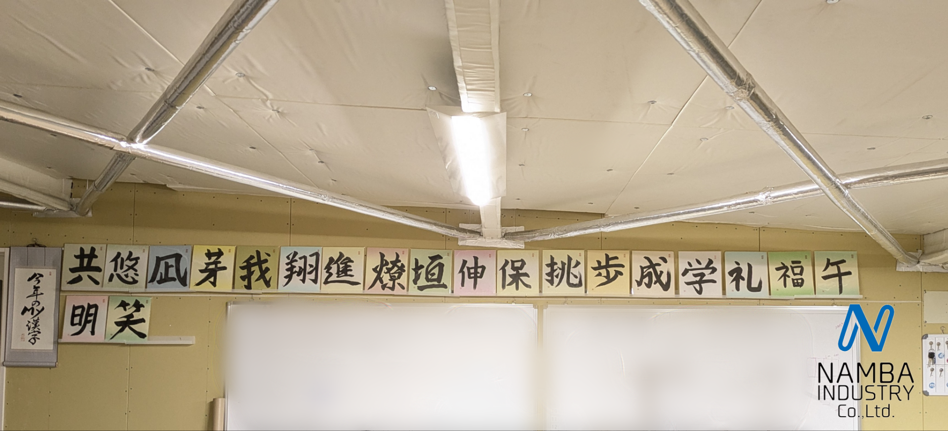 書初め研修で掲げた社員一人ひとりの「MY漢字」は、現在会議室前に掲示しています。